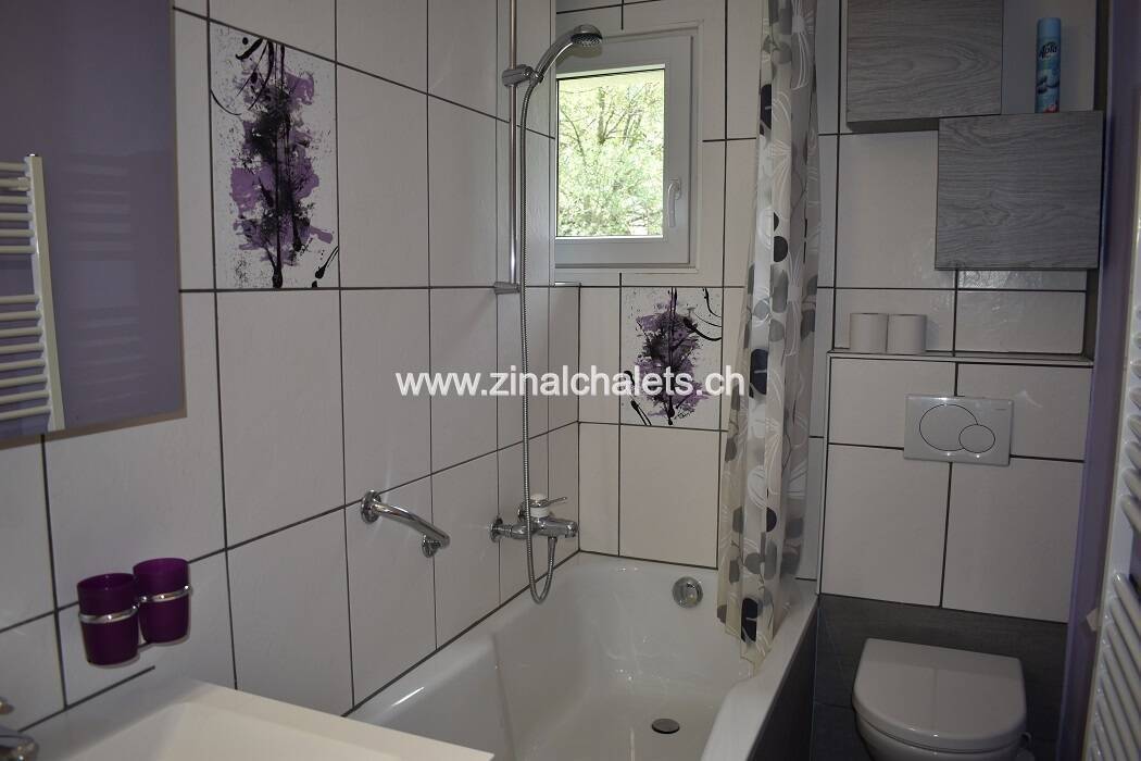 1 bedroom with a double bed (180x200) - 2 bedrooms with 2 beds - living room - TV broadcasting - kitchen - dishwasher - bathroom - separate WC - balcony - facing : south/west - flat in a chalet - living space : 75 m2 - distance to the centre : 800m - animals banned - privat parking - No Wifi